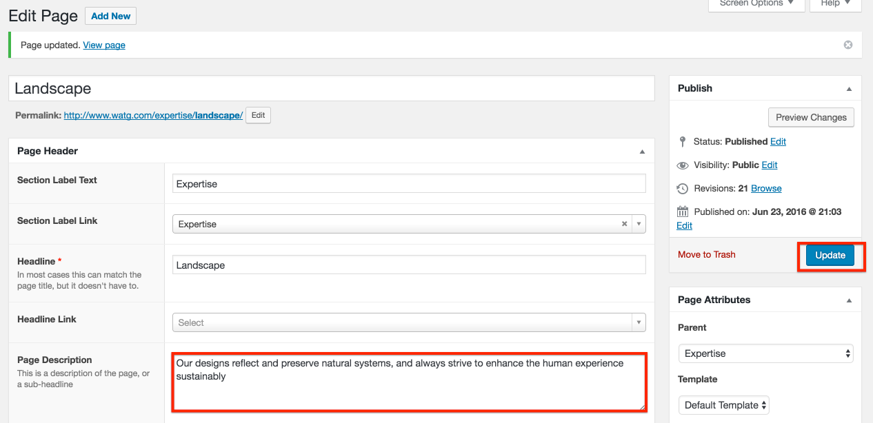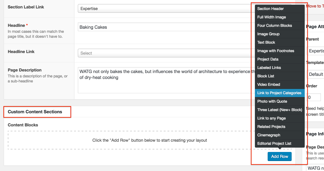 Note: It's always a good idea to open a similar existing page in a new tab to provide a guide for creating your new page.
