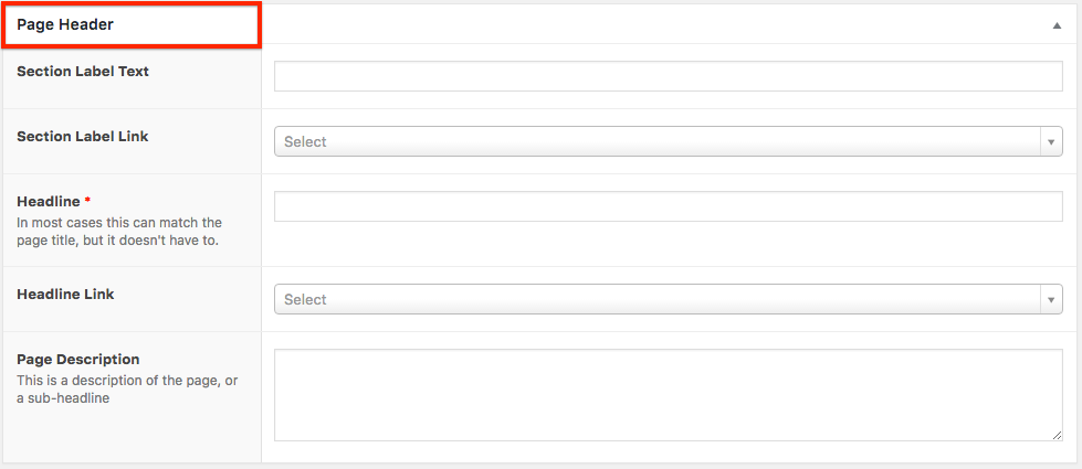 Step 1. Complete all fields in the Page Header with the exception of the Section Label Link and the Headline Link.