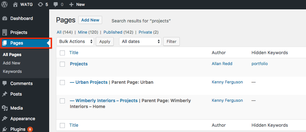 A Project Listing Page is a Standard Page. For reference, see the WATG Project page or the Wimberly Project page.