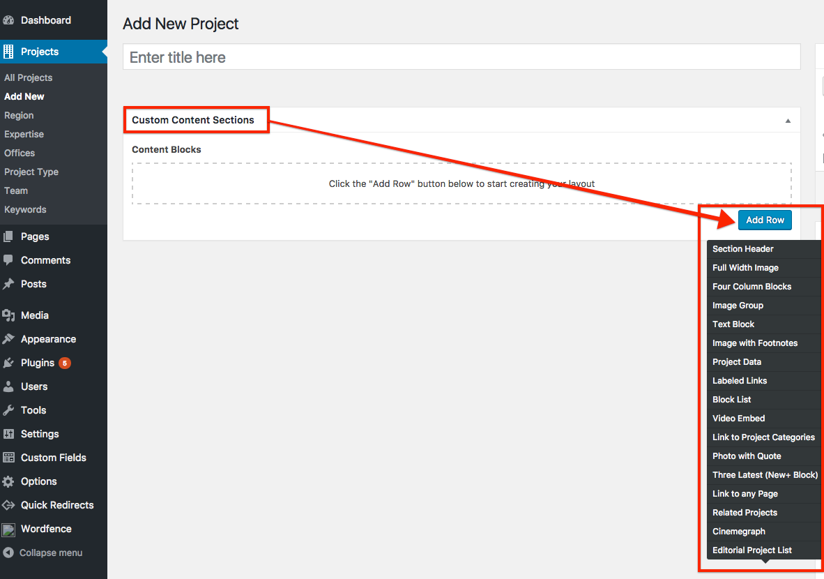Custom Content Sections