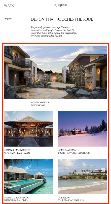 This component is typically used on the Projects Listing page. An infinite number of projects may be added by selecting and searching project detail pages within the component.