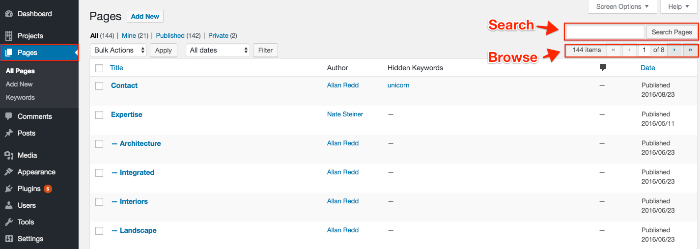These are basic pages like Contact, Expertise, Offices, and Office Profiles as well as the Wimberly and Urban main and sub pages.