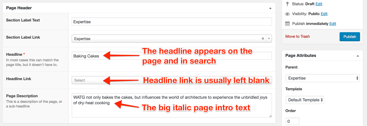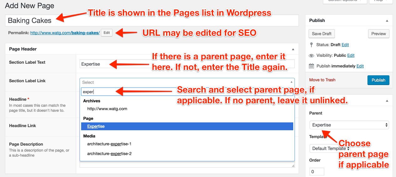 Note: It's always a good idea to open a similar existing page in a new tab to provide a guide for creating your new page.