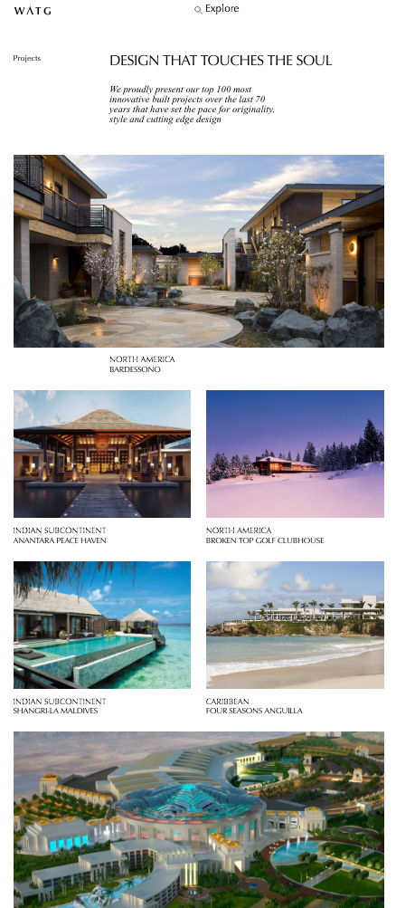A Project Listing Page is a Standard Page. For reference, see the WATG Project page or the Wimberly Project page.